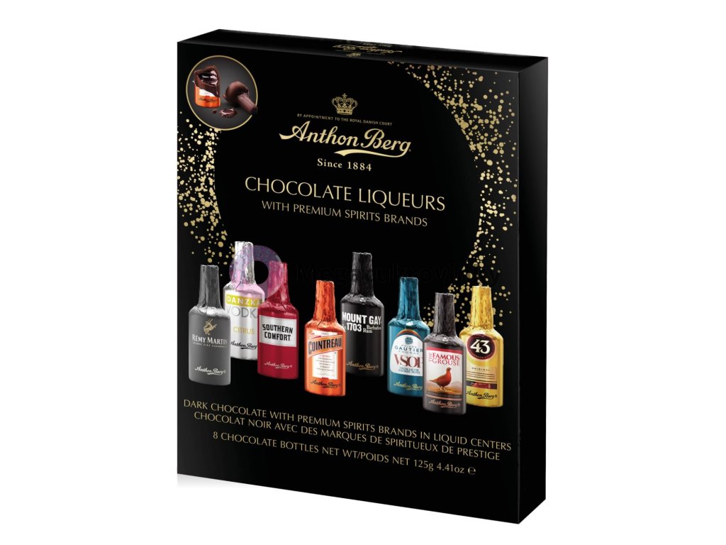 Dokonale tvarované potěšení. Čokoládové likéry Anthon Berg jsou známé po celém světě. V atraktivní dárkové krabičce najdete 8 mini láhví z hořké čokolády, které jsou naplněny kvalitním alkoholem. Hořká čokoláda a alkohol tak vytváří zcela unikátní spojení chutí, které uspokojí i ty nejnáročnější z Vás.