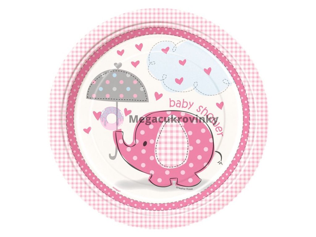 Talíře Baby shower - Těhotenský večírek - Holka / Girl - 22 cm, 8 ks