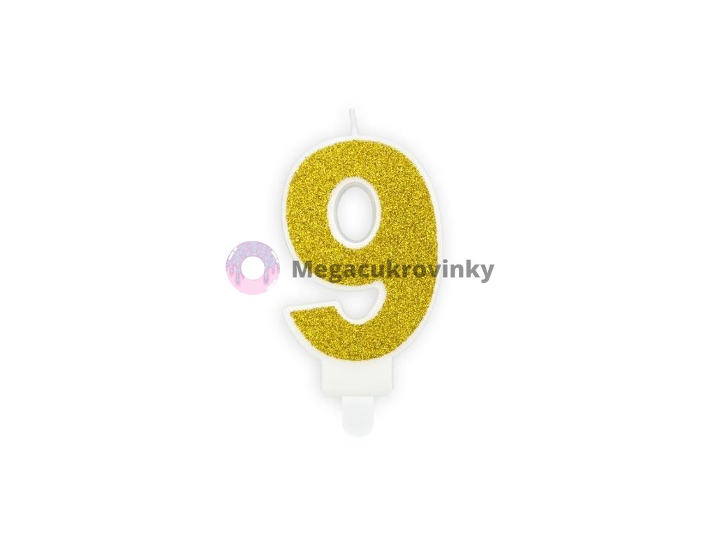 Narozeninová svíčka 9, zlatá, 7cm