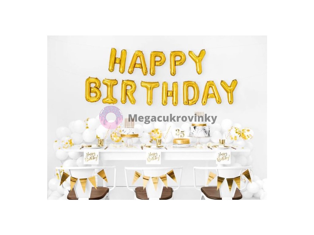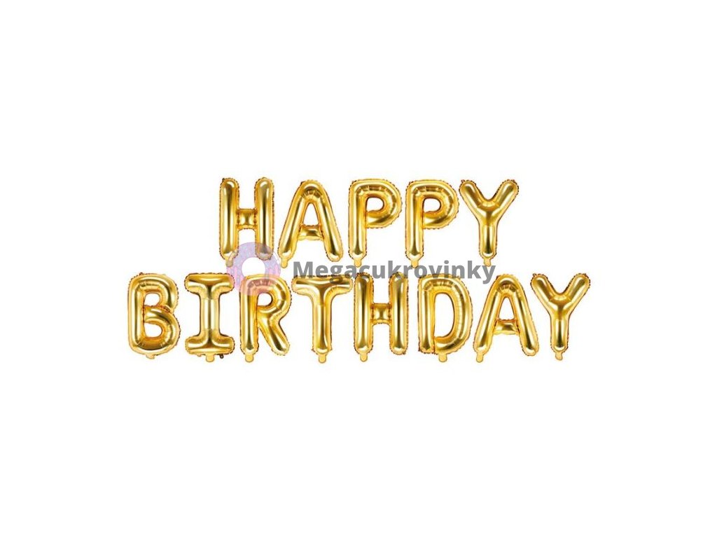 Balón foliový nápis narozeniny - HAPPY BIRTHDAY - ZLATÝ - gold 340 x 35 cm - Balónek